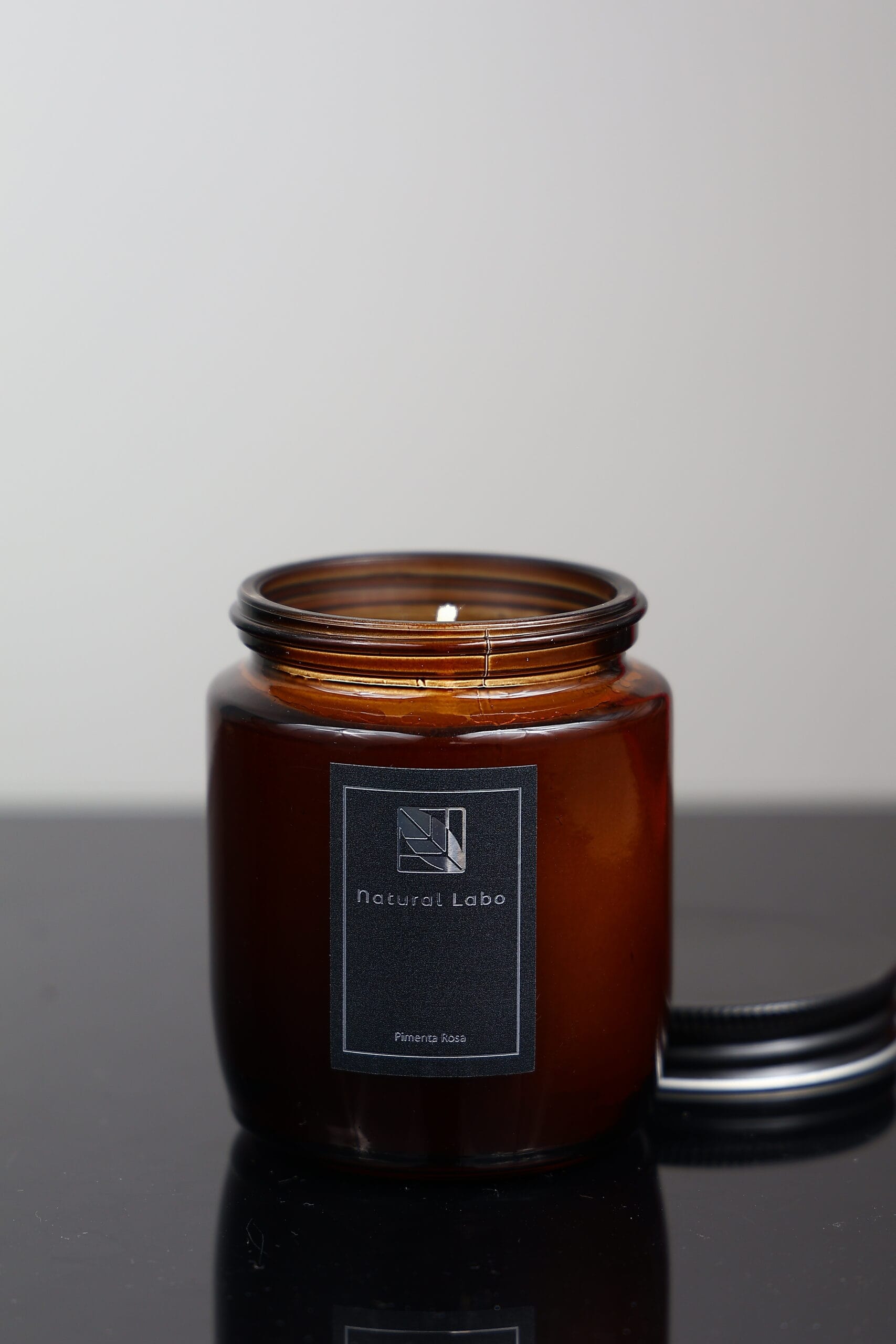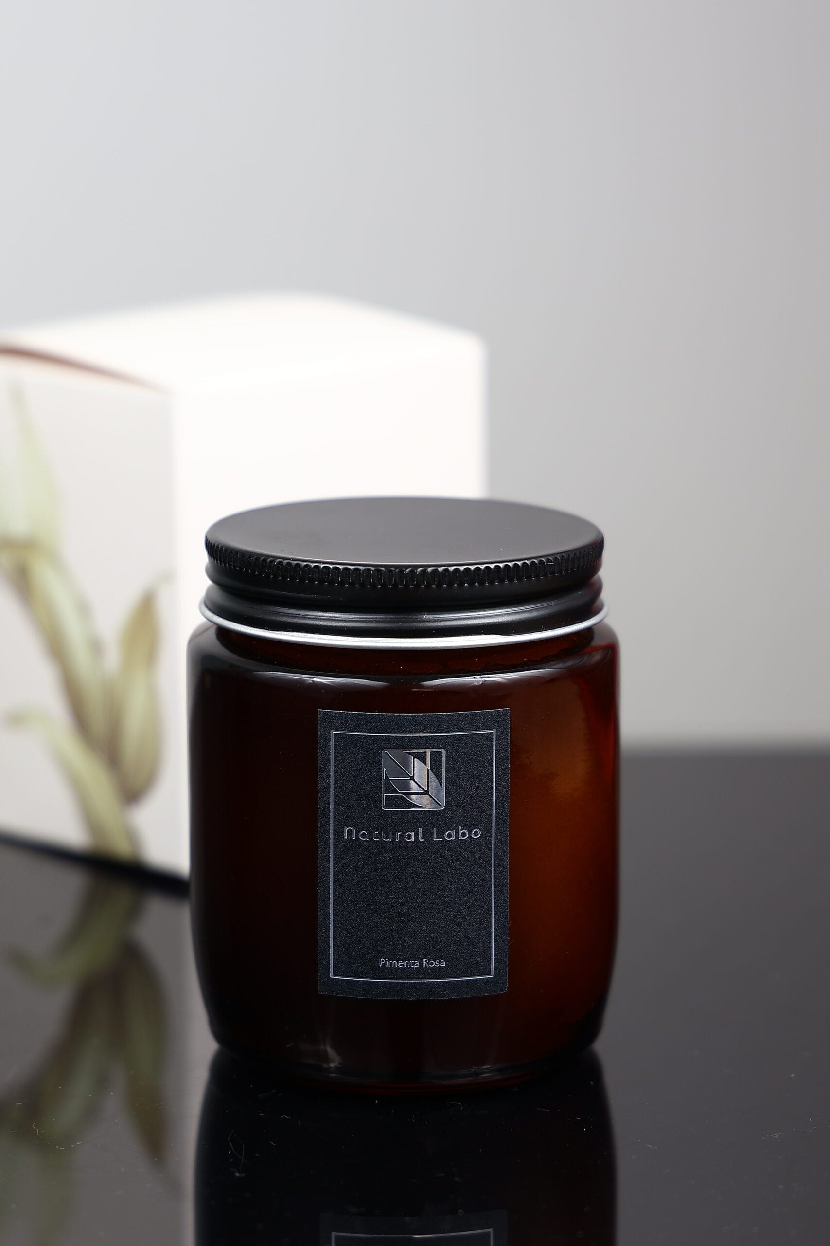 O frasco em vidro âmbar, sofisticado e reutilizável é perfeito para guardar algodão, cotonetes ou até mesmo canetas após o uso. A tampa de alumínio preta com rosca não só garante um transporte seguro, mas também protege a cera da poeira, mantendo a vela sempre limpa e preservada para o seu próximo uso.