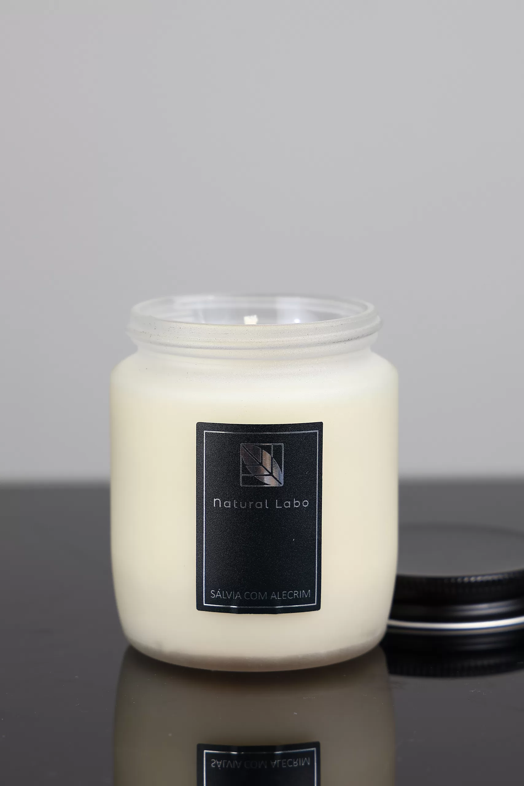 O frasco em vidro fosco jateado, sofisticado e reutilizável é perfeito para guardar algodão, cotonetes ou até mesmo canetas após o uso. A tampa de alumínio preta com rosca não só garante um transporte seguro, mas também protege a cera da poeira, mantendo a vela sempre limpa e preservada para o seu próximo uso.